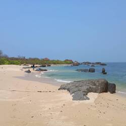 19.3.2025. Today was supposed to be an early start, kids still asleep at 8:30, we had to wake them up. Swim suits on and were planning on hitting the beach, but since the later start we headed straight to the ocean walk and ferry terminal. Hopped the ferry to St. Mary's island, where we then got told the ferry would be back for us in 1 hour. What, that's not a lot of time. The island isn't very big but we still wanted to have a decent swim here. Nevermind, no swimming signs everywhere. Was not happy, but the swell and pull was pretty big I had to admit. Climbed on some old lava rocks, got a little wet splashing about a bit. I think I did a hammy chucking rocks, probably pull up sore tomorrow. An hour was up in no time, hopped back on the ferry and made our way back. Bloody hot still, grabbed a Tuktuk to take us towards the restaurant area of the beach, had lunch and now we're sitting in the AC in the room blogging again.