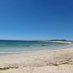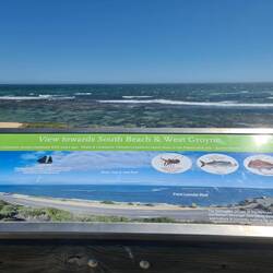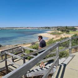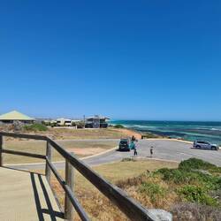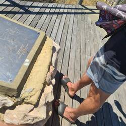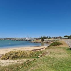 We walk from our caravan park to this point - which is a beaut lookout. We have wandered past Granny's Beach and the Marina, then we walk back the same way. Roger has a swim (prepared he's wearing hisLes mer