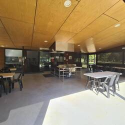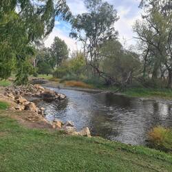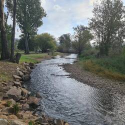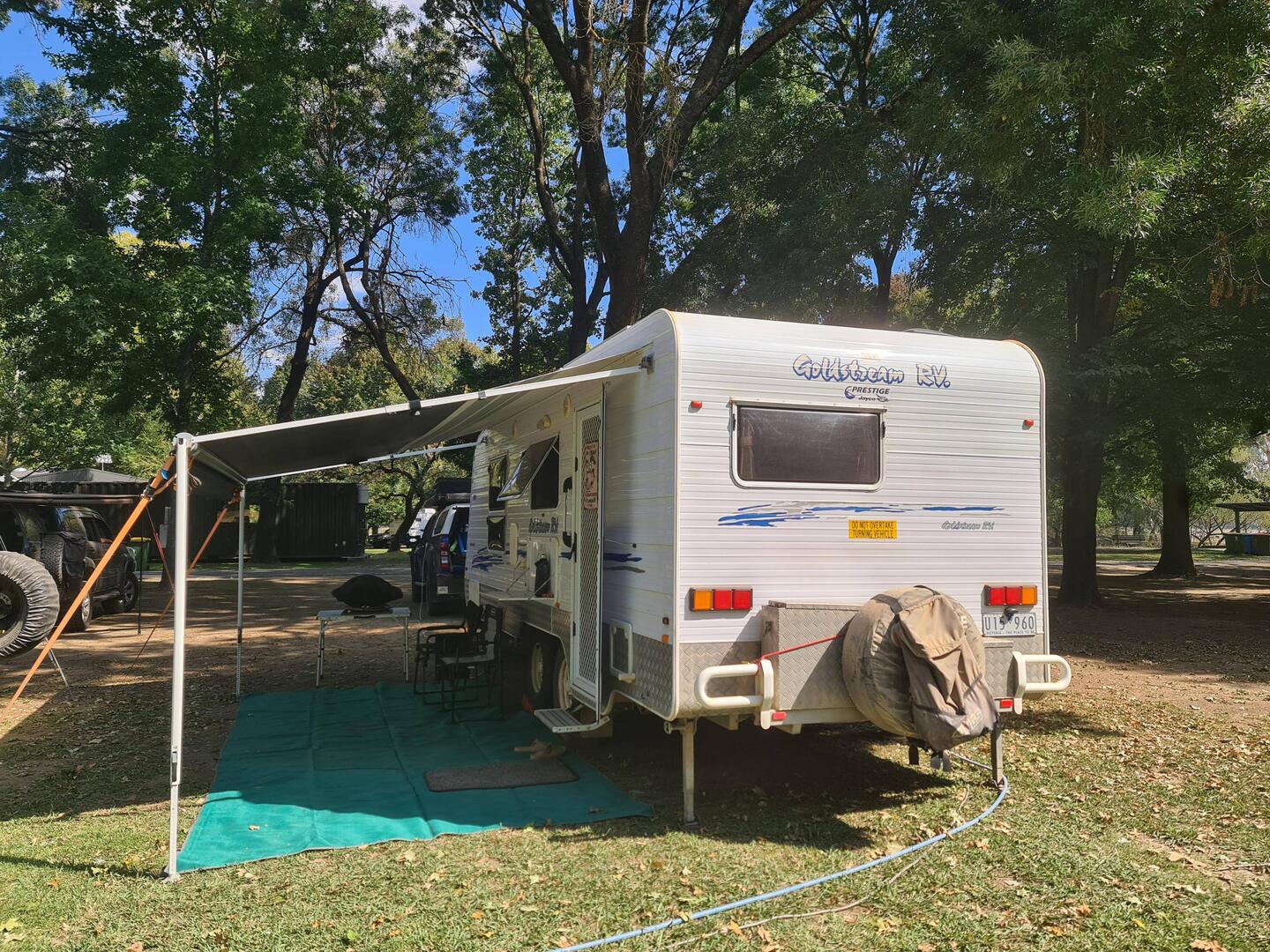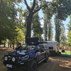 Pronounced 'Clack clack' Caravan Park, we pull in and stop at the office. We are staying 2 nights and have already booked and paid a deposit of the 1st night's rate - Roger has requested that we use our G'day Parks membership offer of a free night (after a certain amount of bookings - which we've achieved) for our 2nd night here. This causes a little confusion for the lady checking us in - but all works out as requested. We are allocated site 40, so we go to it and settle in. As we're staying 2 nights with power - we happily do our full set up. Once we are, I'm keen to drive into Corryong for our 1st look and to get something for a late lunch. Roger agreeable - he points out we can also go and collect our MFSRBF volunteer kits. We return from our drive into Corryong just before 5pm. Roger gets straight onto preparing for our tea, and I get onto putting 2 loads of washing on. We have our relaxing pre dinner drinks while waiting for the washing to be ready to hang out. I get the washing out on the caravan park's clothing and Roger continues to take care of our roast tea - chicken and vegetables in our BBQ. We enjoy our roast with gravy and some boiled vegetables. I use my Thermie to make us some custard for dessert. We tidy up and do our dishes. While Roger goes off to have his shower, I get enthused and make up a batch of Anzac biscuits. This caravan park is a beauty - it has a lovely modern camp kitchen with 2 ovens! After returning with my cooked biscuits, I tidy and do the dishes, Roger makes us a cuppa. Now relaxing before bed.