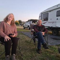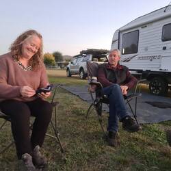 Walk to Lisa and Tony's campsite - they are in the Volunteer Campground (133 Strzelecki Street) which is about 500m from our campground. We don't stay too long - about an hour - as they still have toRead more