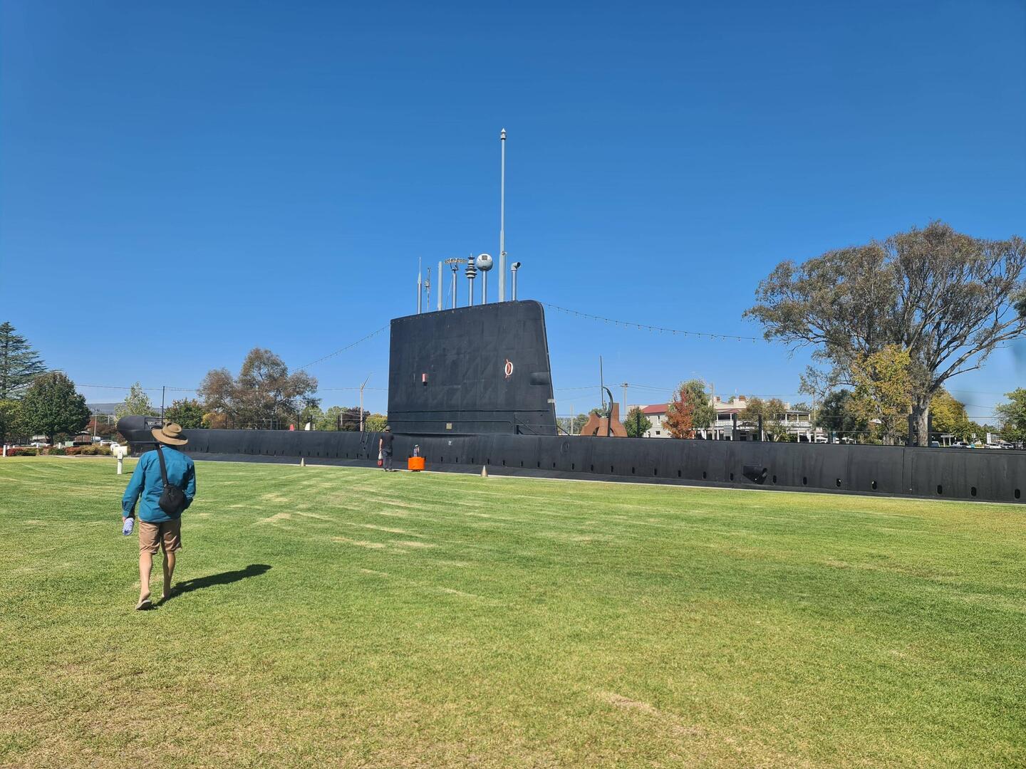 We stop and have our lunch at a picnic table beside the top shell of the Submarine HMAS Otway. A beaut tourist attraction for Holbrook. After we've eaten we go for a walk and climb on top of theRead more
