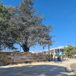 We walk around the main street areas - passed where they held their morning Anzac Day Service. We're heading for the Visitor Centre, when we arrive we find it is closed for Anzac Day. We stop and google on our phones, to find the other thing Roger was keen to check out, the Snowy Hydro Museum, is also closed today. Oh well, can't be helped....this changes Roger's plans, he's now decided we'll head into Canberra today (had thought it would be tomorrow). We walk back to our set up and get back on the move.