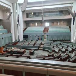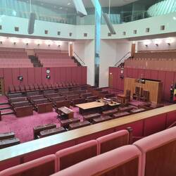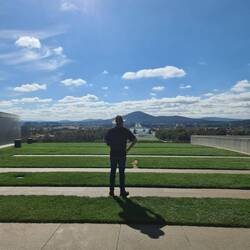 Drive here and find a park (all day $17) between the old and new Parliament Houses. We decide to check out Parliament House first, enjoying the walk and views on the way. Our timing works - as weLes mer