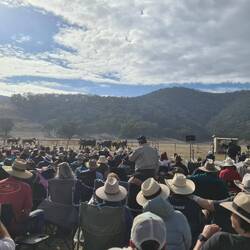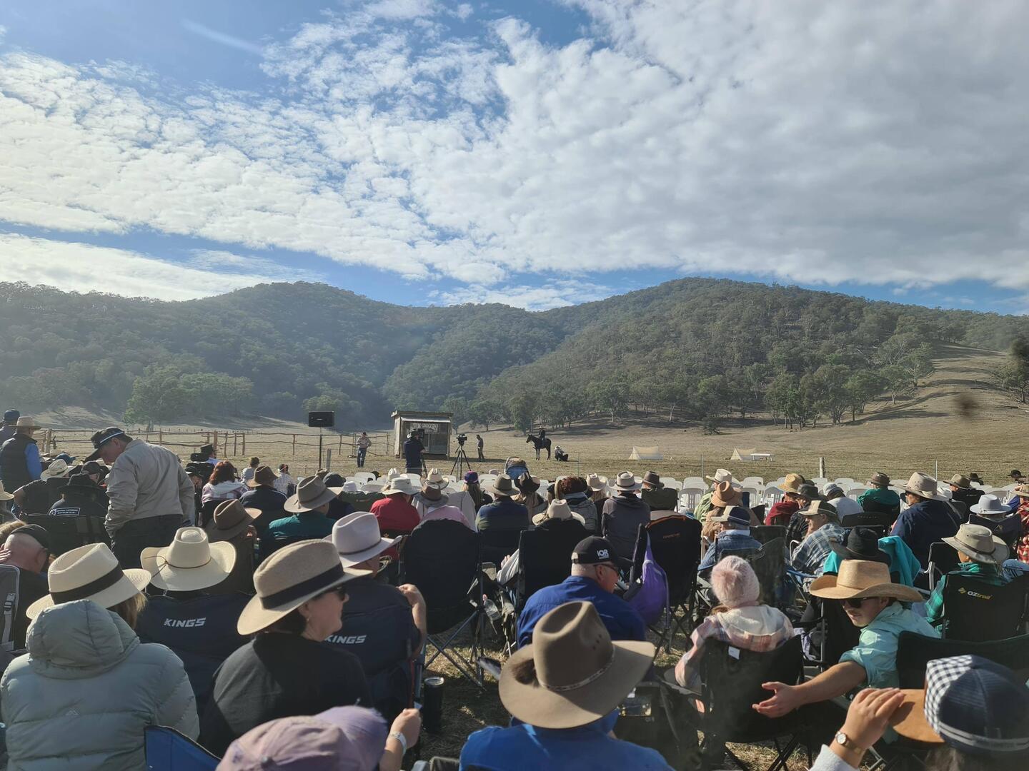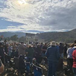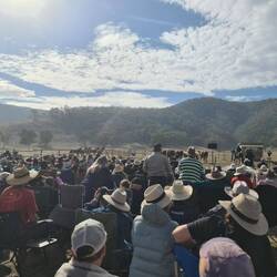 Woo hoo! Roger and I finally get to the Re-enactment area - a paddock out in Thowgla district. We get off our bus and try and find Barb and Adrian - we stand for a while infront of the crowd already settled in the area described by Barb as to where they'd be. This becomes too uncomfortable (standing infront of people already seated) so we retreat to the back of the existing crowd - and then see Barb and Adrian seated very close (5m) from where we'd just been standing. Doesn't matter, we couldn't have sat with them anyway with this huge crowd. Rog settles on 1 of our 'short seats' - I stay standing to see. There becomes more crowd behind me - but I just stay standing as they have chosen to sit behind my stand. We've arrived in time to see Rileys Riders Arrive and some of the other pre- entertainment. It is all very well done with the fabulous backdrop of the mountain ranges. When it comes time for the Re-enactment - the weather is being kind and the setting is fantastic. Then to top it off - we get a Re-enactment performance that won't be forgotten - the horses truly do 'break away'. Full credit to all performers - and leading man Guy McLean, they carried on with 'the show must go on' - and many people didn't really realise the 'acting wild' horses had got away. Truly - what a 'nightmare' for the organisers, but I think it all worked out OK 🤞 I just loved it - as it appears no one was hurt (horses not injured 🤞). After this 'officially' finishes - we now have the 'smoozle' of catching a return bus ride. We do catch up with Barb and Adrian, they of course, are in the same boat as us - the waiting game to get a bus ride back. When the first lot of buses arrive for the returners, Roger and I somehow manage to get ourselves on one (just!). We see as we're leaving that Barb and Adrian missed this bus round - oh well, we'll all catch up later.Read more