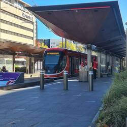 We walk over from our camp and catch this train into Canberra CBD. Very convenient today - especially when it's free. Only takes around 15 minutes to get us into the city. We get off at the end of theRead more