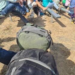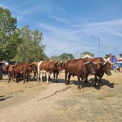 We walk to Tony and Lisa's campground and call in -they're just starting their cookup breakfast, so we leave them to it, with the plan to catch up at the RM Williams Arena around midday. Now we continue walking through the event area to go and visit Barb and Adrian at their campsite. We find it no worries from their instructions. Wonderful to checkout Adrian's new ute (Mazda) and new caravan (Avan single axle pop top) - they've got a top set up for their touring. We enjoy a cuppa with them before we head back to the event area - letting Barb and Adrian continue to get organised to come over as well. We'll all meet up for the MFSR Challenge finals.