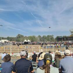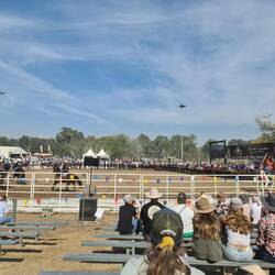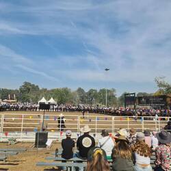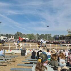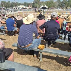 Roger and I settle ourselves on the seating at RM Williams Arena in a good viewing spot and make sure we've got enough room for 6 of us. We watch the presentations and see all the competitors lined up in the arena - such a terrific sight. I love how the competitors can back and side step on their horses to 'park' where they need to be between other horses. Barb and Adrian join us first, with Lisa and Tony not far behind. We all settle in and have a good time watching the finals. Soooo much skill going on out in that arena! Once the finals action is finished - there's some entertainment by Lachie Cossor, while event organisers tally up for the Awards Ceremony. Once the Award Ceremony's done - it's all finished. What a great Australian event! It's now around 3pm - so I go and try and grab a late lunch, whoops I left it too late, most vendors are already packed up. I end up with what's left at a souvalaki van - not that flash. I join the others in the bar area. This will be where we'll 'hang out' until our 5.30pm Volunteer BBQ. Barb and Adrian kindly invite us for drinks back at their caravan, but without any of our own drinks to provide, and the fact we'd have to find the energy to return to here, we decide we'll stay put. I must be tired and grumpy - I have a 'dummy spit' at Rog infront of Barb and Adrian - glad Tony and Lisa had ducked off to their camp to miss it! Too trivial to mention what it was about, and we 'let it go' so we could get on with enjoying time with our friends. Before the BBQ gets underway, Barb and Adrian say their goodbyes to us, as they don't feel right to stay with the 'wind up' for organisers and volunteers (hind sight - it wouldn't have mattered). As always with great company - this time with Barb and Adrian has flown by.Read more