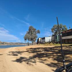 We drive here to check out this campground beside the lake/dam. It's good - even has a pool (not looking maintained at present) - but we both agree we prefer Reflections.