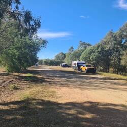 9/05/25 Friday. Roger is up before 7.30am, I lie in bed reading until 8am. Get up and have a leisurely breakfast, then get ready to go for a drive to do a walk to the Dog on the Tuckerbox. We leave just after 9am. Return to camp around 12.30pm to have some lunch. Roger has a meat and salad sandwich and I make up 2 open toasties - relish, avocado, tomato, Turkey roll, capsicum and cheese on toast. After a short spell, we go for another drive to look about Gundagai. Return around 4.30pm to light the campfire and relax, before getting tea sorted. Roger is making his sausage surprise casserole on the campfire. We ring Robert to see what's happening in his world - work and usual stuff. Tea is delicious, and we enjoy it with some mead wine that we warm up on the fire. While having our tea - Roger first to notice a cat meowing - sure enough there is a young ginger cat in our camp area - does not take long to realise it's not a feral cat, guessing it may be an abandoned cat - poor thing, scared but looking for some attention. I offer it my finished plate - with gravy scraps on it - which is enough to coax it to me for a pat. Oh I find this upsetting - such a scared but hopeful little being of affectionate fluff! Will try not to encourage it any more - wish I could work out what to do for it. We finish off the leftover date damper - by heating it on the campfire plate. I retreat (from sad cat) to the van to do the dishes. Roger comes in shortly after to have his shower. Now just our usual - relax before bedtime.