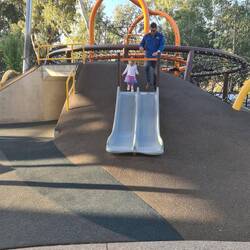 Helen brings us here in her car with Hudson and Pippa. We stop for fuel on the way - and we get icecreams for the kids, and big kids - Rog and I.