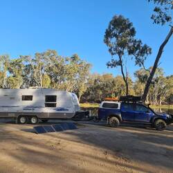 21/05/25 Wednesday Both have a sleep in today - so peaceful and no rush to be anywhere - get up just before 8am. Have our breakfasts and tidy up. I'm keen to go for a walk - Roger happier to meet me with the ute and caravan at the location I mentioned I'd like to walk to. OK that's what we'll do. I start my walk around 9am - quite sad to leave this camping spot - with this weather (calm and clear) it has been paradise. On packing up Roger discovers we've got a mouse/mice in the back of the ute (living in the drawers) - plans to get rid of that problem.