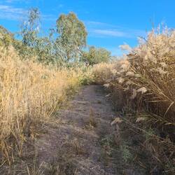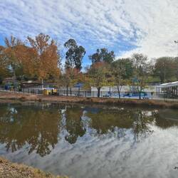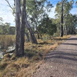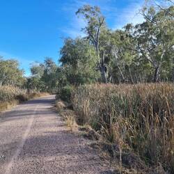 This is such a lovely walk along beside the water canals - from our campsite at Rocky Waterholes to the Lake Talbot Water Park. Roger drives, and parks our ute and caravan beside the water park, andWeiterlesen