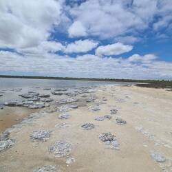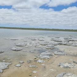 Stop here and do the walk around the lake 1.5km. Marvel at the stromatolites - looks like blobs of concrete left over the ground.