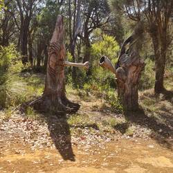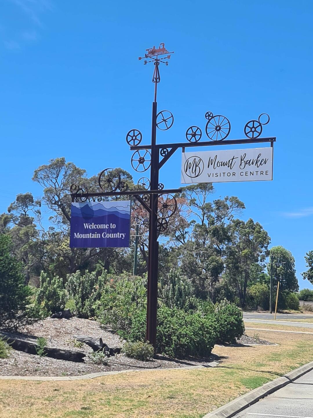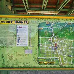 After our morning walk, we drive here to have a look. We stop and go to the Vistor Centre which is situated in the restored railway buildings. Lovely centre full of local art and craft, local produce for sale. We gather that the main things to visit as tourists are the walking trails (Roger's had enough for the day) and the vineyard cellar doors/cafes/restaurants (we're well stocked at present) so we decide we'll just drive about Mt Barker and look at it's shopping area. I do purchase a couple of items from the Visitor Centre - as gifts for Rael's birthday. Local artist Sue Cadoo's bird work - cutting in wood "Magpie's party" and a pkt of local freeze dried fruit.