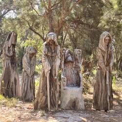 These must be on private property - where during the day you're allowed to drive around the owners block (signs stating please remain in your vehicle) and check out all his chainsaw creations - there are so many! There is a collection mailbox to post $5 per adult (no charge for children). We're happy to pay our $10 - honesty system.