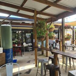 I have fun having a tasting paddle of 4 different ciders - none of which I particularly liked! This became our lunch spot and we did enjoy our burgers! Barramundi one for Roger, and a chicken one for me. Different and tasty.