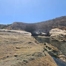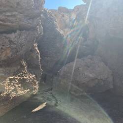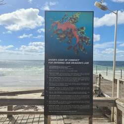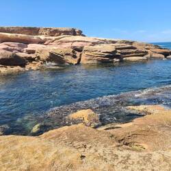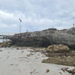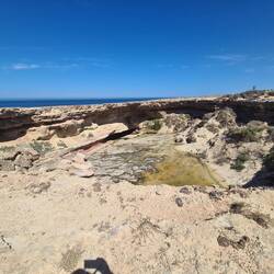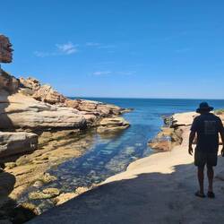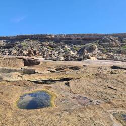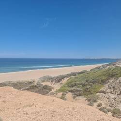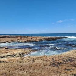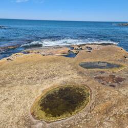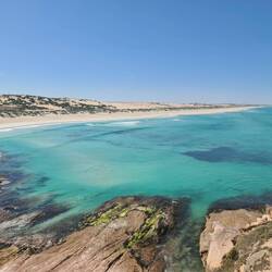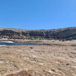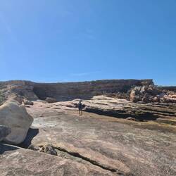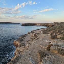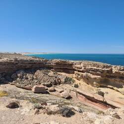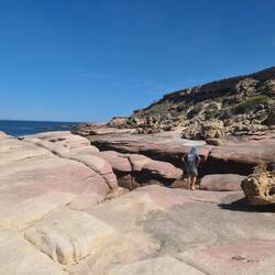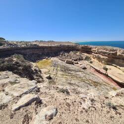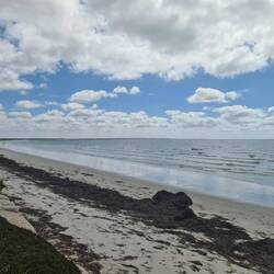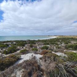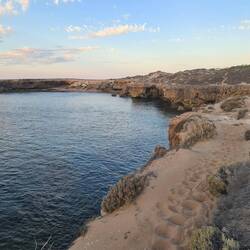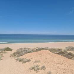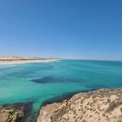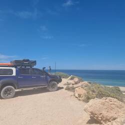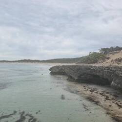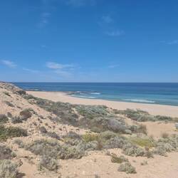On top of cliffs looking out over a beach - very beautiful. We park and walk towards the cliff edge to admire the beach, and we get to see quite a large shark (not sure what sort) just slowly cruising about in the water below. I'm quite shocked at how shallow and close to the beach it goes. No swimming for us at that beach today!Read more