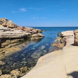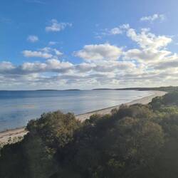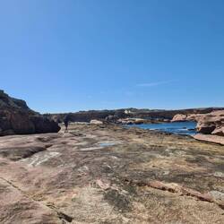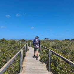 Roger drives me to the start point and drops me off. Happy to be doing this walk today - much cooler day. In fact as I start off, it's threatening rain and quite blustery winds, but half an hour into the walk this all calms down and becomes a lovely mild morning. Really enjoy walking near the coast line - water views are beautiful. Then the last section of the walk (the way I've done it) has the inland uphill part that takes me to the lookout again - then the downhill homeward bound to the caravan park. Strava tells me I walked almost 13kms and taken approx 2 and a half hours to do it. That'll do nicely - my feet are complaining, out of practise! Enjoyed it immensely - so much so, while doing it, I rang Gabe Baudinette to see if she has room in her Serra Terror team for me to return this year! Yay, there is, so I will consult with Roger and make my plans to be back for June long weekend event.Read more