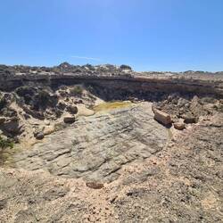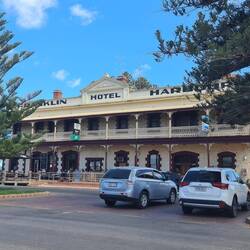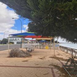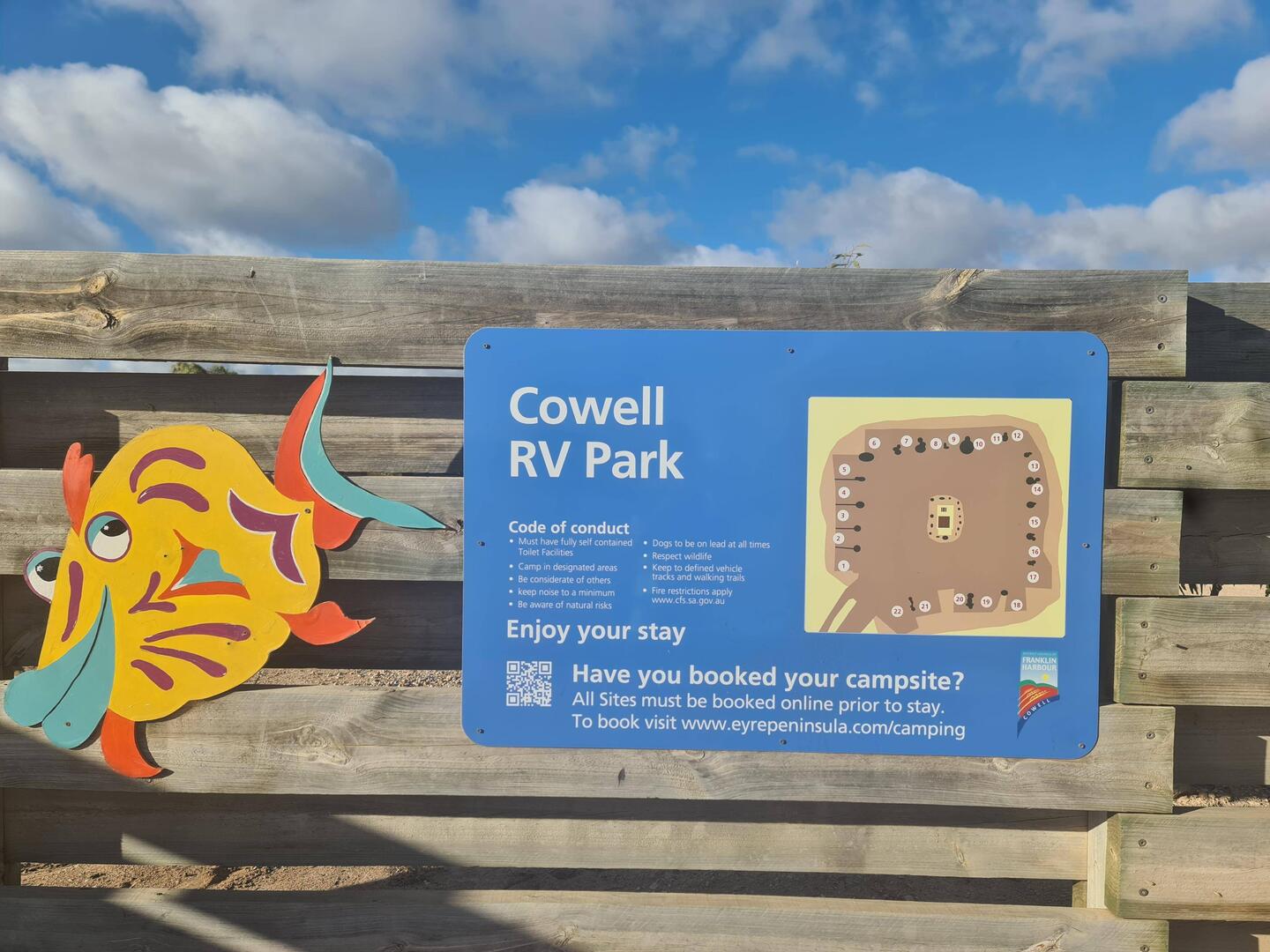 When we arrive we go and check out the 2 caravan parks that Cowell has. The one nearest the main street and jetty area is booked out - and the other one is is a bit too far away from the town. So we pull up just off the main street area of Cowell so we can have some lunch. We have this in our caravan - left over taco mince in a sandwich for Roger, and leftover taco mince on a couple of open toasties for me. This gives Roger the chance to look on Wiki Camps and find that there is a RV Campground just on the outskirts of Cowell we can camp out, as we're not looking for power while we've got cooler weather. Roger goes and fills up the caravan tanks then we find the dump point so our caravan 'housekeeping' is up to date. We decide to go to the RV campground. Once we're settled there we come back into Cowell (ute unhitched) and park so we can walk about the place. Enjoy a stroll up and down the main street - we get milk from the IGA that Roger goes and puts in the Engel in the ute - before wandering out to the marina and Jetty area. When we come back, we stop at the Franklin Harbour Hotel for a drink - beer for Roger, CC Dry for me. Now we go for a drive....Read more