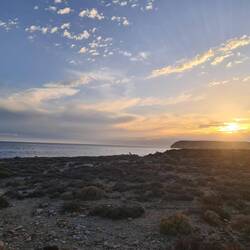 On return from our walk, I call by Otto's camp to check how his day has been - all good he tells me, relaxing and packing up ready to leave in the morning. His wife Sandra is out on an all day tour (got up 5.30am) - Shark diving in a cage - he doesn't expect her back before 8pm.