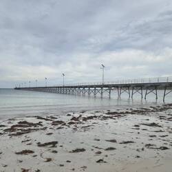 20/02/25 Thursday. I get up at 7.30am to go for a run. I go into Cowell and run out on the Jetty, then return and go out the other side of the RV campground close to the coast before coming back for breakfast (6km). Roger has prepared to do our bacon and eggs - so he cooks and we eat together. Now we get organised to depart. We leave here around 9.30am. Heading into Cowell to get fuel.