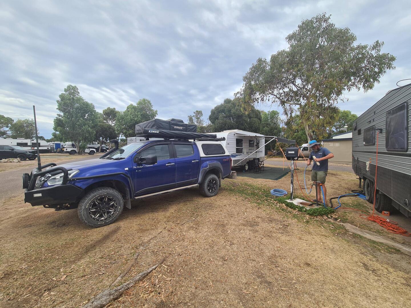 Roger and I setting off in the Dmax Ute with our Goldstream caravan in tow to explore our country Read more