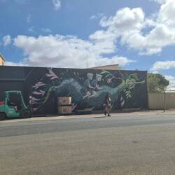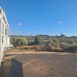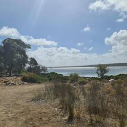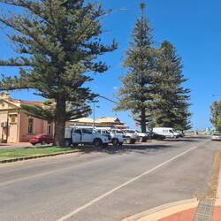 Park in one of the main streets of Tumby Bay. Ready to go for a walk to look around. We realise we're parked near an Op Shop and it's open. Good opportunity for me to offload some denim shorts I've replaced (from another Op Shop $5) and have a look see, we discover this shop has an extensive stock of audio books in CD form. Roger has a good time selecting a couple of titles. We now keep wandering and end up at the Bakery - other travellers have mentioned this one as a good one - for a morning smoko break. Roger gets his cappuccino with a Bee Sting and I get a Spiced chai with a Kitchener Bun - I haven't had one of these for years (at least 30 I'd say if not more). It was sooo good. After we've had our morning tea break we continue wandering about the place. Enjoying a lot of the street art and going out on the town's Jetty. Once we've had a look in the main street areas we go back to our ute and van and drive further about Tumby Bay. A lovely neat coastal town. We call in and check out the RV campground on the outskirts of town - it's OK but it's inland, we feel we can find better further along the way we're wanting to head. So off we go.Read more