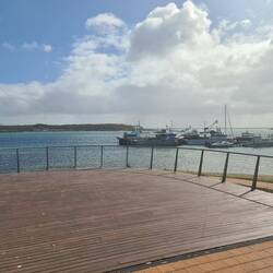 Roger and I go for a walk along the Parnkalla Walking Trail - heading in towards the town centre of Port Lincoln. We go as far as the Hotel Boston - where we call in and have a drink, sitting outside taking in the water views. Then we return back to the caravan park.