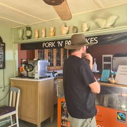 We find the driveway thanks to good signage and drive in to find buildings that are a bit run down and yard maintenance lacking. Now I'm a farm girl at heart so I didn't let this put us off. We park and go enter the Cafe area - no one in sight. Everything is open and accessible, we even wander into the next section of the building which appears to be a second hand shop full of old 'stuff'. We go back into the Cafe shop area and check out the pork for sale in a display fridge - nice pork chops and bacon. Still no one around....after waiting another 5 minutes or so - we felt we had better leave.