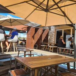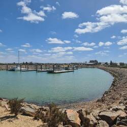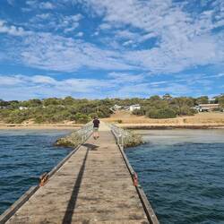 After having gone for a walk to the IGA supermarket earlier, to get some grocery items. While there and looking in their Cellabrations liquor department I came across the Coffin Bay gins - three of them. On asking how best I could get to taste them - I'm told they don't have a call in distillery set up, my best way to try them is to go to the HQ and do a 'Gin Flight' paddle. So here I am! Roger has come over with me - he says he feels like a coffee. Apparently it pays to book to come here, but they manage to accommodate us with a lovely table outside (as long as we're gone by 5.30pm for its next reservation). We've already ordered our selection - a whopping $35 for my gin paddle - to try the 3 local gins and $5 for Roger's cappuccino. Most people come here for the fresh oysters - $30 per dozen, luckily we've had our fill of amazing oysters from this morning. Typical me, I like all the gins - though one stands out. I ask and find out I can't purchase it here - I'll have to return to the supermarket. After we leave, I do. Roger goes back to our van to relax. I come back from the Cellabrations store with 1 bottle of gin and 2 bottles of bubbles - and a foldable cooler bag 'thrown in' for my purchases!Read more