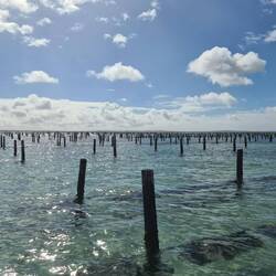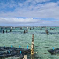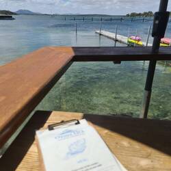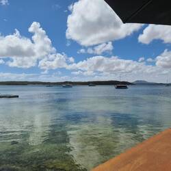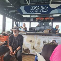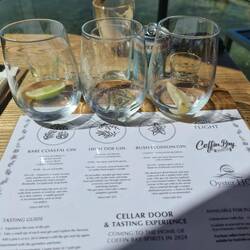 14/02/25 Friday Happy Valentines Day. Roger and I are awake around 7am - thanks again to the chirping birds. We get up and have our usual breakfasts (porridge for me, 5 weetbix followed by toast, 1 vegemite, 1 honey for Rog and our cuppas). We tidy up and get organised for our morning tour we're booked for. Told to bring standard gear (water, hat, sunnies etc) and bathers if we want to swim or socks if we want to pull on supplied waders. Too cool for swimming for me this morning! We can walk from here to get to our tour take off point. We head off at 9am. Tour from 9.30am to 1pm. We get back to our caravan just after 1pm. We still feel like lunch - so we have toasted sandwiches - mine actually open toasties using a couple of slices of sourdough. Relax for a while before we both go for a walk to the supermarket. Return to unload our groceries, then walk to HQ (Cafe and Oyster Tours) for me to sample local gins.