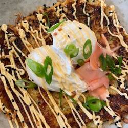 Our lunch spot today. Roger and I almost ordered toasted pastrami sandwiches (sourdough bread) but on impulse I changed my mind to try something different. I couldn't pronounce it - Japanese savoury pancakes, Roger decided to have the same. We're glad we did - very yummy and a great change from what we normally have for lunch. We didn't feel like hot drinks at this time, so we just had the free bottled water. Would happily eat here again.Read more