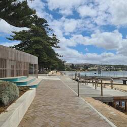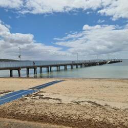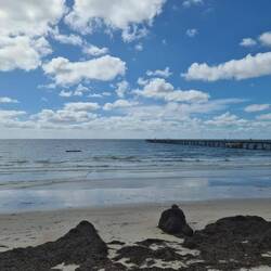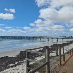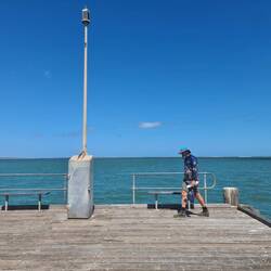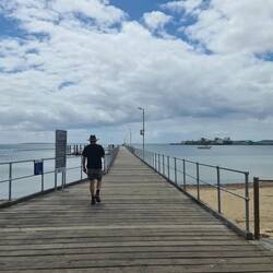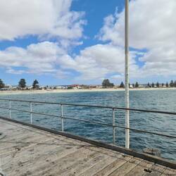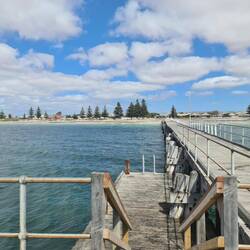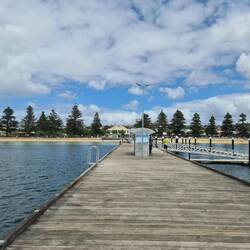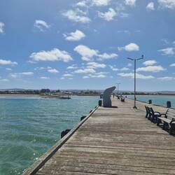 We are enjoying what we see in this town. A good selection of shopping - we've been to BCF and Auto Barn. Have Coles and Woolworths for groceries. We go and have a look in the Visitor Centre. The foreshore and Jetty are well kept and lovely to wander about. While we went for a walk on the Jetty we saw a couple of dolphins swimming quite close in the bay.