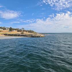 16/02/25 Sunday We're woken by Roger's phone alarm at 6.15am. We get up as we need to be at the wharf around 7.30am for our tour today. We get dressed into our bathers that are suitable to be worn under wetsuits, and put warm comfy clothing over the top. We have our breakfasts and pack what we are required to take and leave here just after 7.30am.