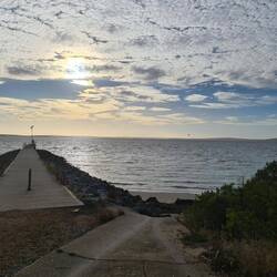 17/02/25 Monday We have a nice sleep in, I get up at 7.45am wanting to go for a run. Roger lays in abit longer - unfortunately his neck and back are 'playing up'. I head off for my run just after 8am - and return 9.20am and meet up for a wander with Roger as he's walking out on the Jetty here at the park. Return to the caravan for my breakfast. No plans for the day so just relax and catch up on odds and sods. Find out that Levi and Dova's wedding is postponed until next year - same date and month so it's changed to 15/05/2026. Roger also let's me know that Robert has messaged that he'll be going out working for himself after he returns from Canada. Time for a change for him. Lunch today is meat and salad sandwich for Roger, I finish off the cold roast lamb and then have a couple of open toasties with avocado, salami, tomato and cheese.