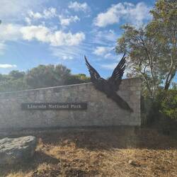 18/02/25 Tuesday My alarm goes off at 5.30am and I quickly get out of bed (before I change my mind lol) and Roger follows as well. We discussed if we got up early enough this morning - we could drive to Lincoln NP (40 Min drive) and do a scenic walk (approx 5.6km) and still get back here in time to leave by 10am. We have a quick breakfast - muesli and prunes for me, Rog's usual and get ready to go for a hike - we leave just after 6am. We get back to our caravan 9.10am. Time for me to go and have a shower and for Roger to move our van to get water for our storage tanks. We leave this park just before 10am. This was a beaut park to stay at - great amenities and so lovely right beside the water.