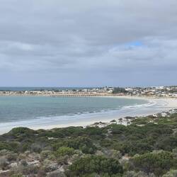 Roger has made an appointment for a massage this afternoon so we go for a drive about Port Lincoln to check out caravan parts and servicing places looking for parts Roger wants to replace. We find one place that may have a air vent cover - so we come back to the caravan to get our one that needs replacing to compare. I decide to stay at the caravan for a rest and read - while Roger drives off to resume his parts search and go for his massage. When Roger gets back - he's unsure whether the massage has made a difference - hoping the next few days it will help it improve. He decides to go for a swim in the parks pool - I'm tempted to go too, but remain at the van, sorting bookings I'd made for the wedding - change them to the new date. When Roger comes back from his swim (best pool so far he tells me), we rest and listen to more of the Bronwyn pod cast - finish series 1.