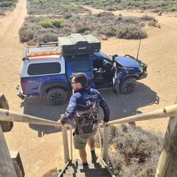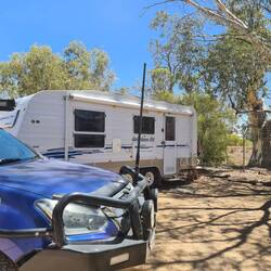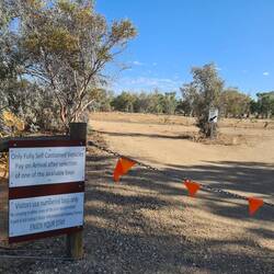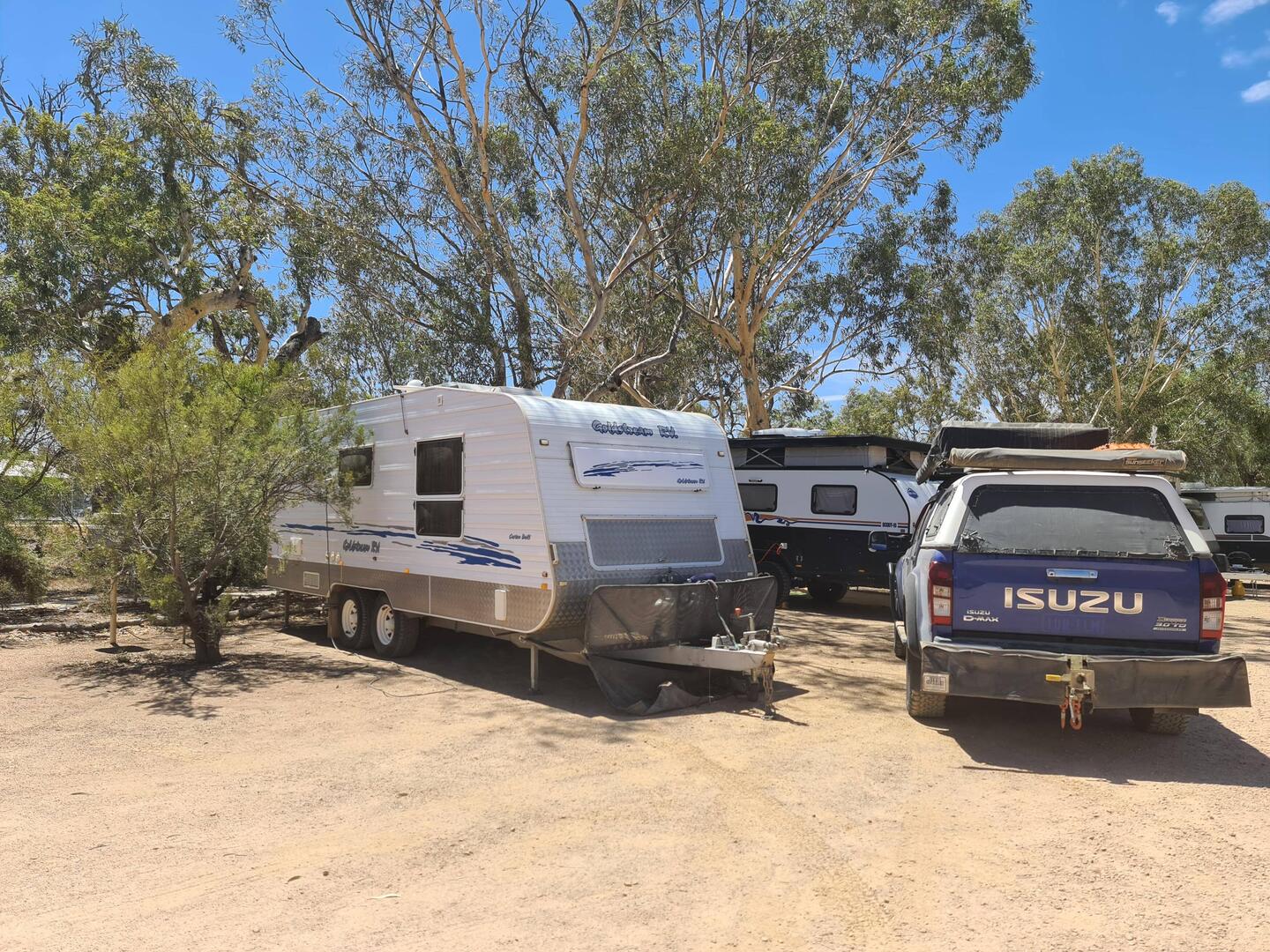 Great set up here for fully self contained travellers. Cost $10 a night per vehicle. We choose our spot, settle and relax. It's quite warm still so we stay cooler in the shade. Roger in the parkRead more