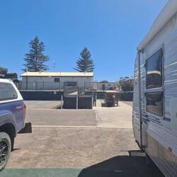 Feel a good vibe here as soon as we arrive at the office to book in - as lady looking after us is so lovely. We get a powered site with waterfront location, close to the amenities block and campRead more