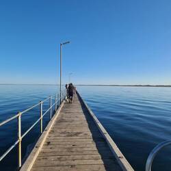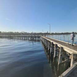 Drive here to go for the walk along the Jetty. As I'm wandering by the Marina I notice there are a couple of dolphins leisurely swimming about in there. Always a thrill to see dolphins.