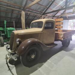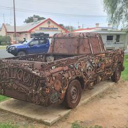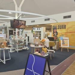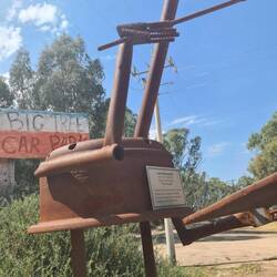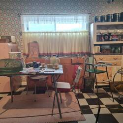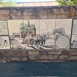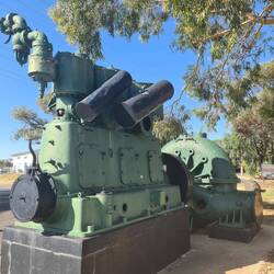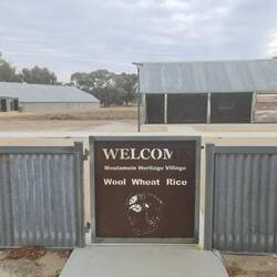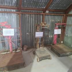 Before leaving Moulamein, we stop and have a look around this display. Our timing is great - as a small tour bus of folk has arrived here with a tour guide, and the buildings get opened up for us allLeia mais