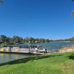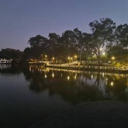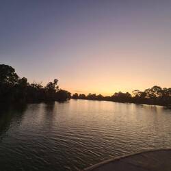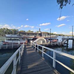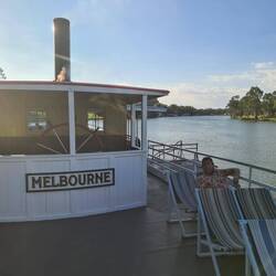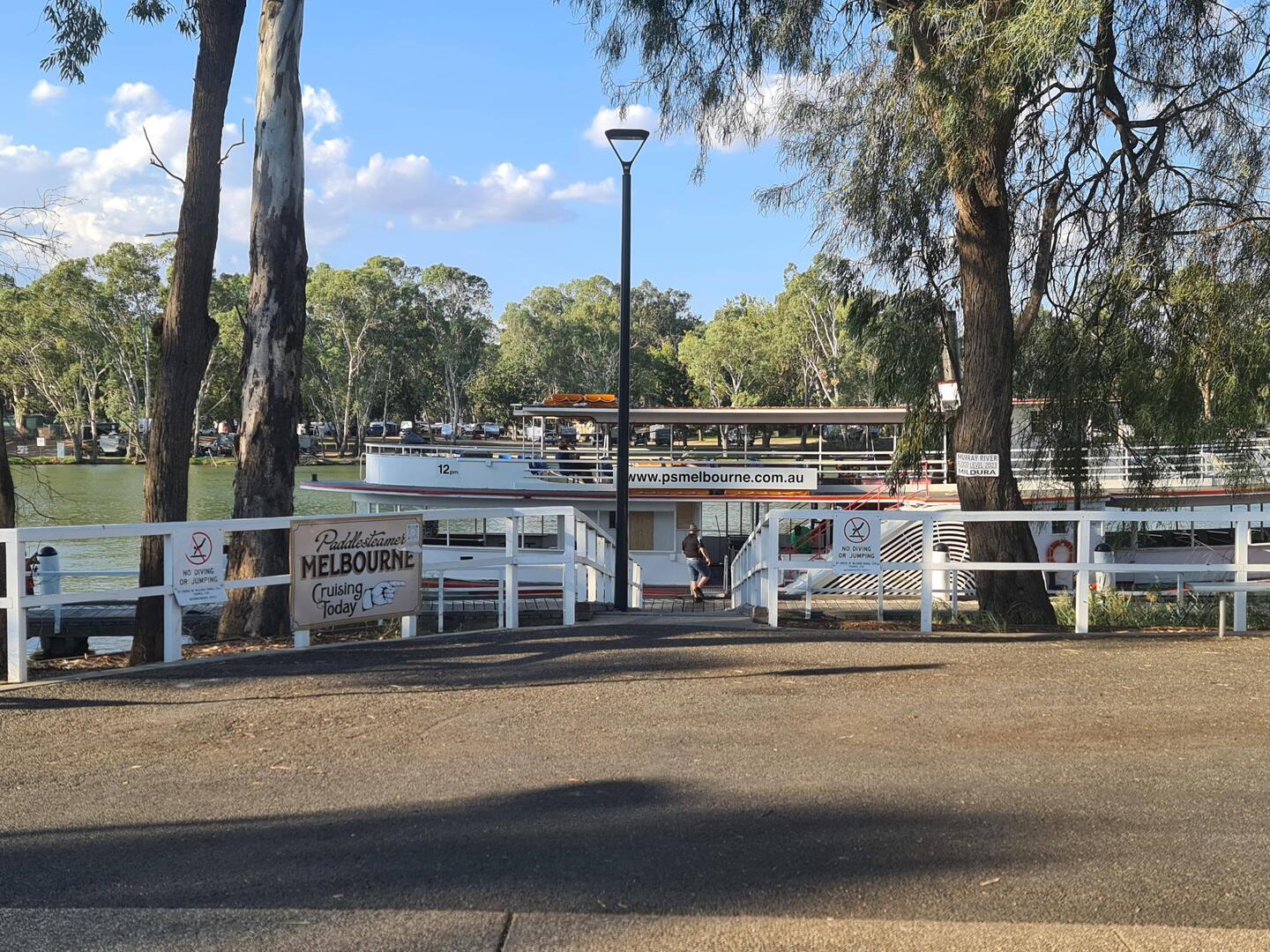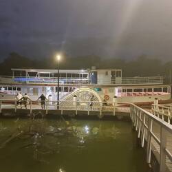 Drive to the Mildura Wharf and park. We've come here to do a 90 minute sunset cruise on the Paddlesteamer Melbourne. Departs at 6.30pm and returns at 8pm.