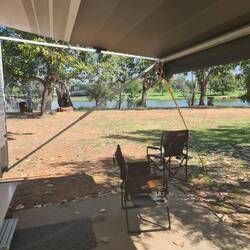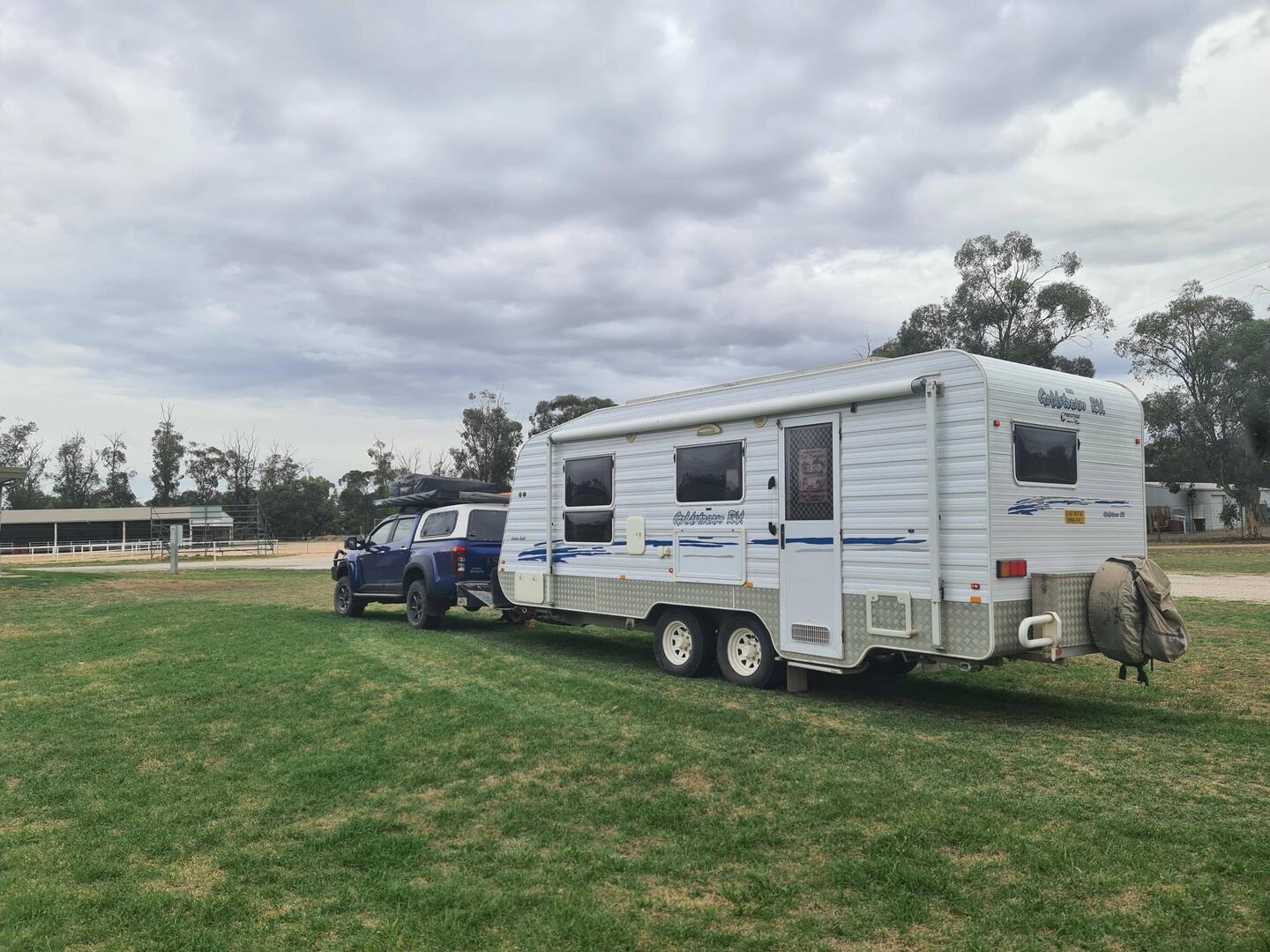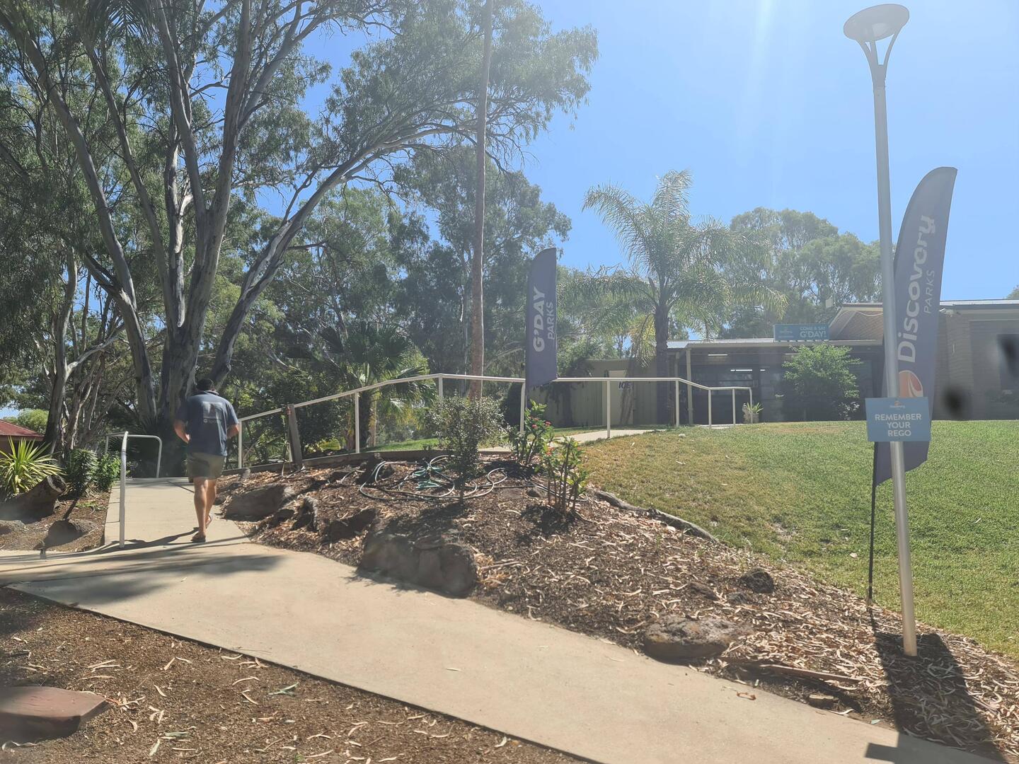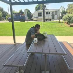 Come to this Discovery Parks caravan park - crossing the river from Victoria to NSW. Easy book in process when you're not in a hurry - which we haven't been on this whole trip! Nice young womanLeia mais