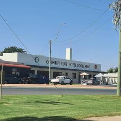 Get to Moulamein and head straight to here. Pull up out front of the Bowling Club Rooms and go inside- where there is a lovely restaurant, bar and lounge areas. Staff member explains we are welcome toLeia mais