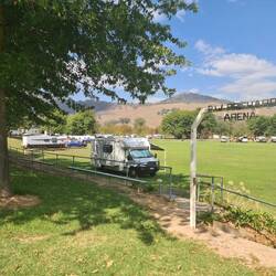 This is Roger's designated camp spot for today - as we are approaching, we realise by signage and looking towards the showgrounds that there's definitely something 'horsey' going on here! Roger stillRead more