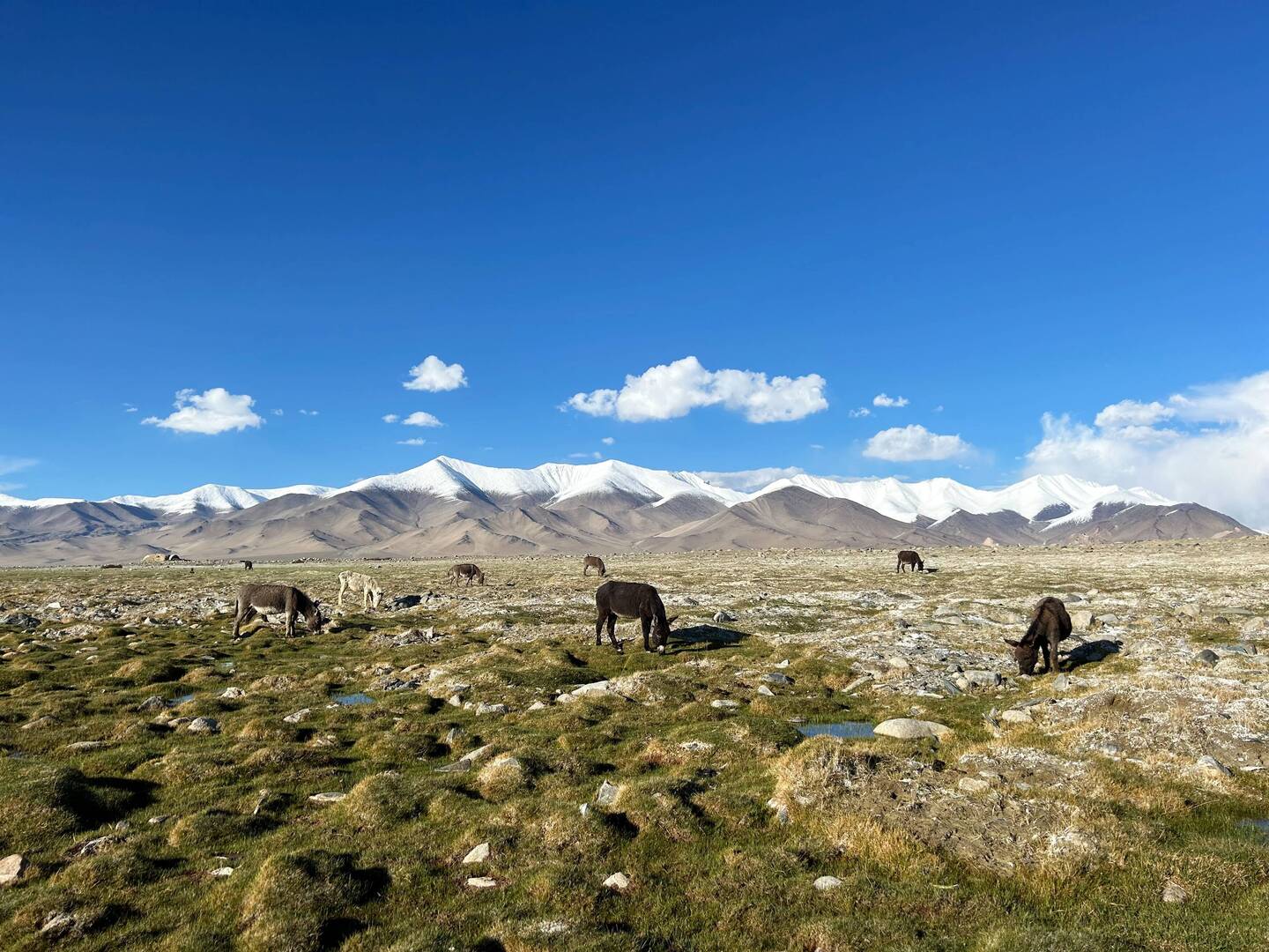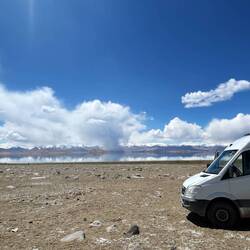 Hinter uns die chinesische Grenze mit hohen verschneiten Bergen, vor uns der See und dahinter eine kirgisische Bergkette mit Bergen über 7000 Metern Höhe. Einfach atemberaubend.Read more