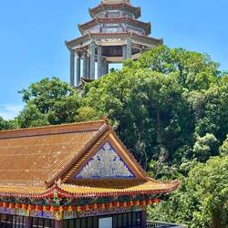 Mitten drin ein Buddhistischer Tempel, sehr bunt, fast wie imRead more
