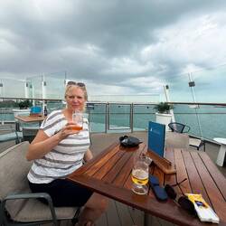 Gegen Mittag sind wir mit einem GRAB zum Marina Bay Cruise Terminal aufgebrochen und haben eingeschifft. Alles war perfekt organisiert und ging ganz reibungslos.