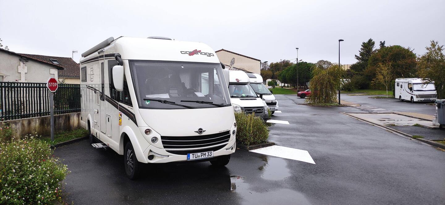 Nach langer Fahrt quer durchs Land, ein Stellplatz im kleinen Ort Barbezieux, Nähe Chateauneuf.