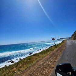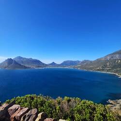 Afterwards, we had dinner at a restaurant next to Cape Point. It was my first and also my last time ordering pasta in South Africa. 🍝🤭 After the meal, everyone was tired. So we took a little nap while Peter, our driver, drove towards Hout Bay. When we arrived at the viewpoint, we were rewarded with a stunning view over the sea. The scenery was absolutely amazing. 🌞 Normally, we would have watched the sunset at this point, but we were there too early. We decided to drive to the beach at Hout Bay, where we spent our last hour before we went back to the city.Läs mer